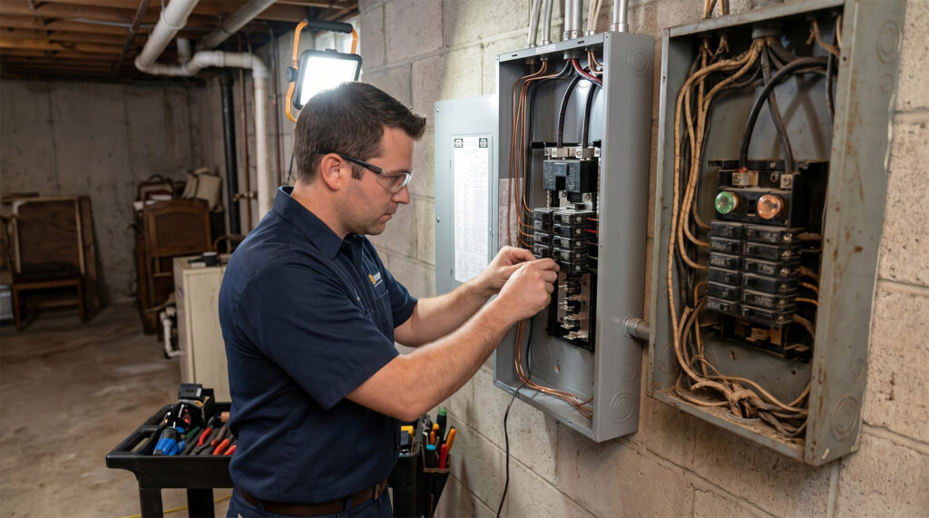 Yes, panel work requires licensed electricians to maintain safety and code compliance. We handle this dangerous work so you stay safe.